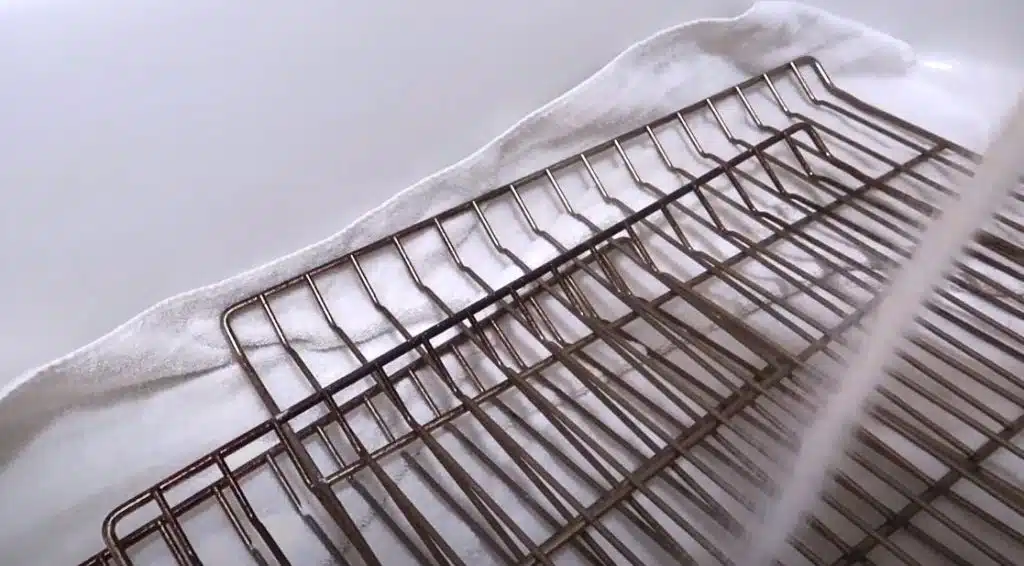 Once you’re satisfied with the scrubbing, it’s time to rinse off all the grime and cleaning solution. Do this under running water and, again, pay attention to corners to ensure that no grime gets left behind. After rinsing the racks, leave them to air dry or wipe with a clean kitchen towel before replacing them.